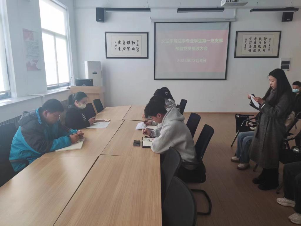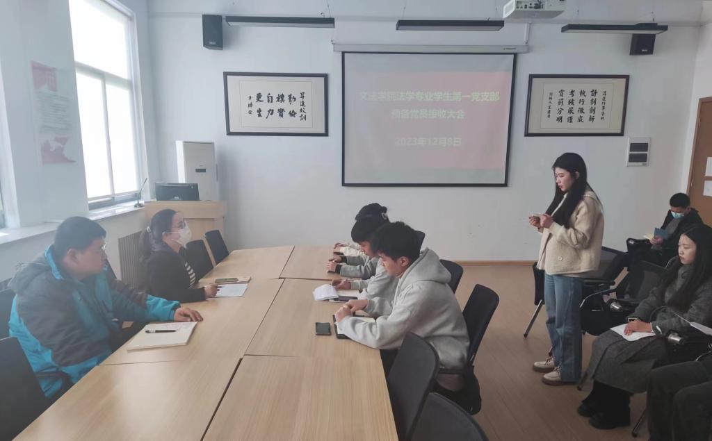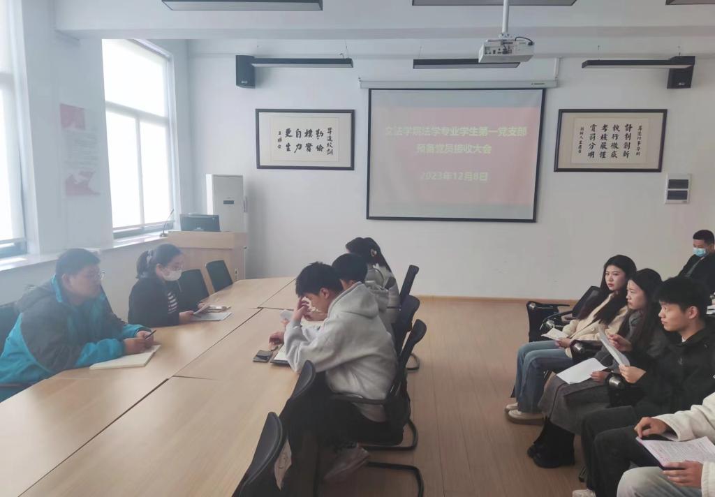 12月8日下午,太阳集团tyc539法学专业员工第一党支部在教学1号楼314召开预备党员接收大会。支部全体师生党员参加会议,会议由支部书记王松洁老师主持。