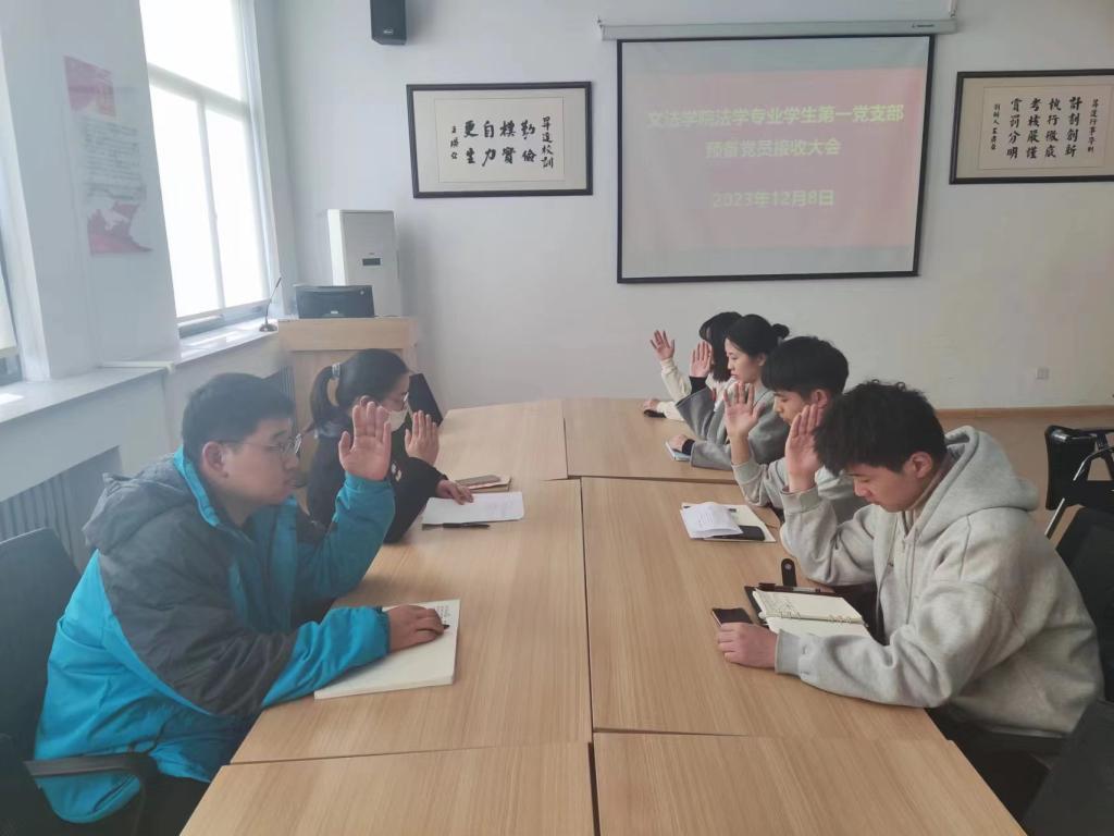 经讨论,支部正式党员举手表决,一致同意接收刘倩如、徐智灵等10位发展对象为预备党员。支部全体师生党员在宣传委员赵国润的带领下向党旗庄严宣誓。