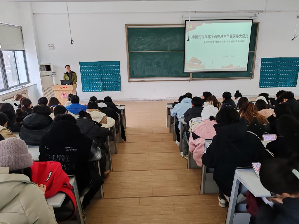 李南方老师的授课围绕全面推进中华民族伟大复兴开展。他从党的二十大精神讲起,阐明了当今世界正处于百年未有之大变局,当代青年应高举中国特色社会主义伟大旗帜,弘扬伟大建党精神。接着,李南方从新时代的伟大变革历程和全面建设社会主义现代化国家的重要意义等方面展开论述,系统地阐释了中国式现代化的内涵、发展历程与特色。李老师强调青年人要有责任,能担当,以磅礴的热情投入到中华民族伟大复兴的进程中去。最后,全体成员进行了合照,结课仪式圆满结束。