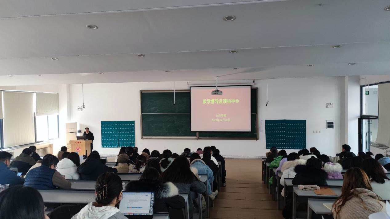 在会上,及文平教授从本学期的督课的基本情况谈起,肯定了学院在教学质量监控以及课堂教学方面取得的成绩,同时也从教学态度、教学中心、教学效果、课程价值、课程思政、学法指导、教师专业化七个方面详细阐述了课堂教学中仍然存在的问题和改进的方法,最后从教学评估资料、课程思政、兼职教师管理、材料规范化、产出导向、新入职教师专业化六个方面提出建设性意见。