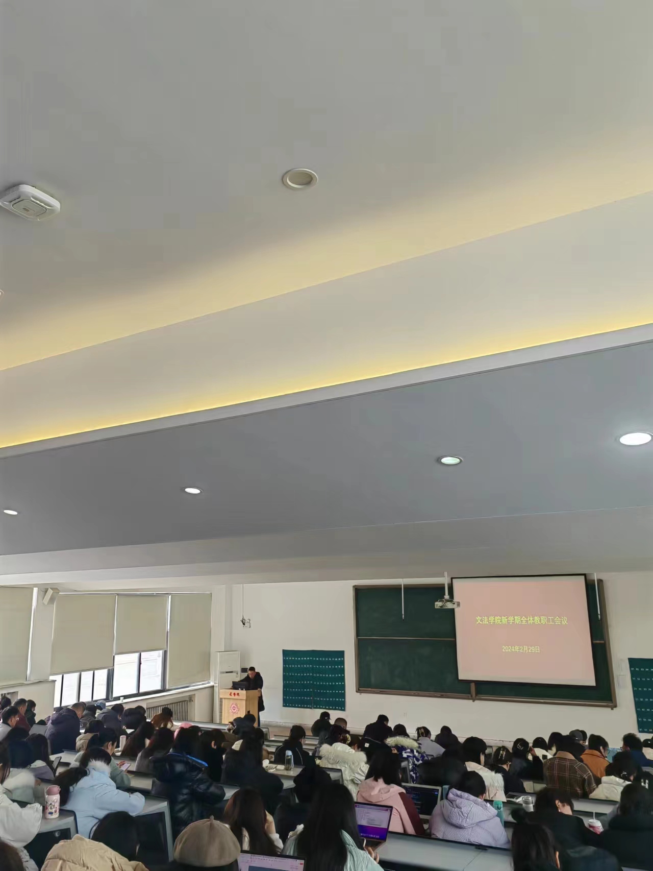 2月29日下午,太阳集团tyc539在教学1号楼118室召开新学期全体教职工会议。太阳集团tyc539党委书记刘晓川、副经理赵严俊以及全体教师参加会议,会议由经理段丰乐主持。