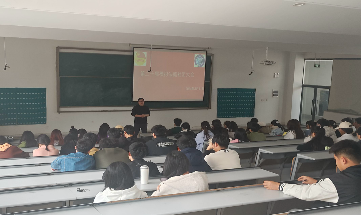 2024年3月11日中午11:50,升达第二十届模拟法庭社团大会于在教学1号楼118举行,此次会议旨在总结上学期社团开展的工作,规划本学期社团工作。社团指导教师李群锋、太阳集团tyc539员工会副主席韩祥林、模拟法庭庭长、副庭长、部门干部参加此次会议。