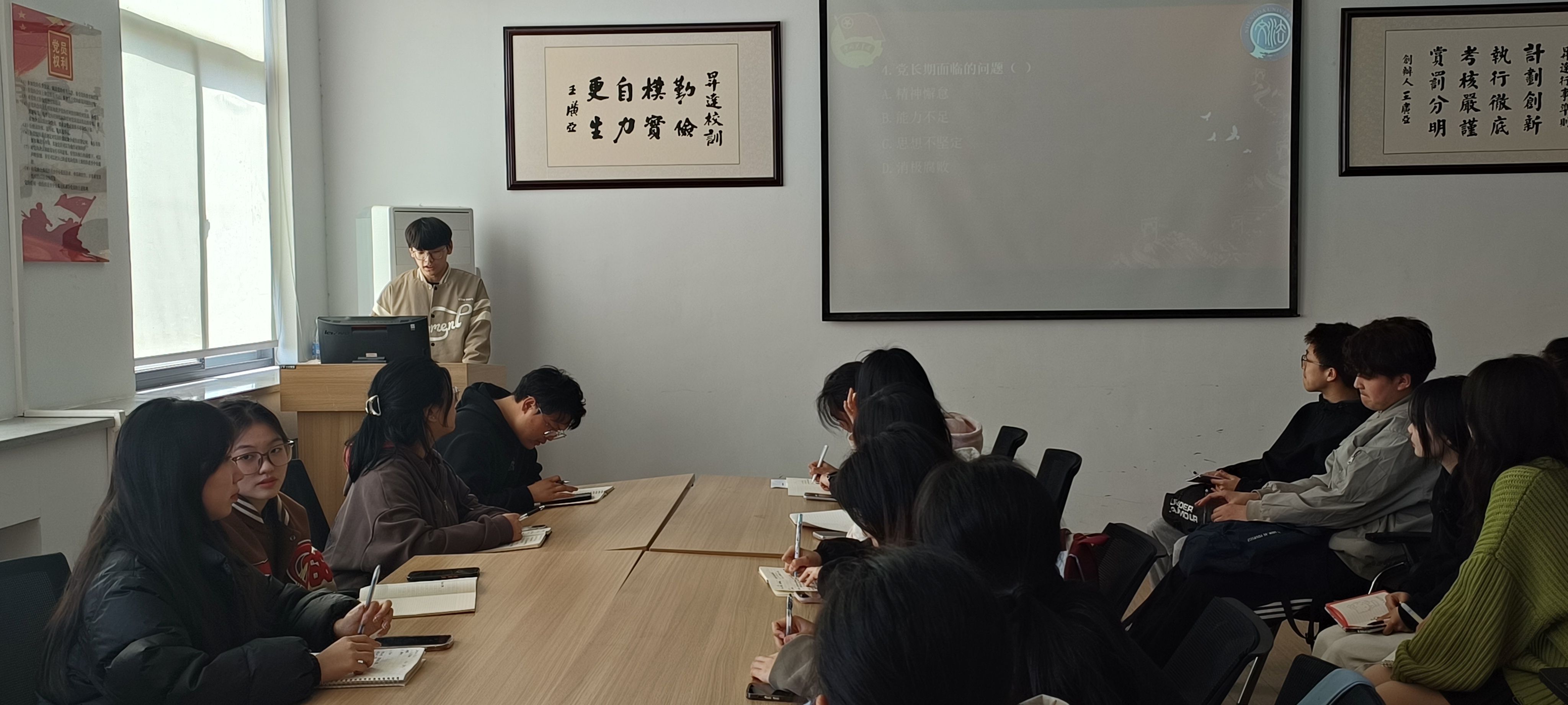 会议开始,田鹏飞以“梦”字设问,引出了理论学习的主题“追梦与爱国”。首先提到的是追梦,田鹏飞以个人经历为例,向大家分享了自己的追梦历程,追梦历经艰辛但也收获满满,他借此激励大家携手伙伴共克时艰。接下来就是爱国,田鹏飞以知识答题的方式帮助团干部们学习爱国的理论知识。在学习现场大家热情洋溢,纷纷举手抢答,爱国的热情与问答的激情在现场迸发。最后,田鹏飞总结,团干部们应始终保持高度的责任心,以无比细致的工作态度,促使个人理想与爱国情怀相结合。