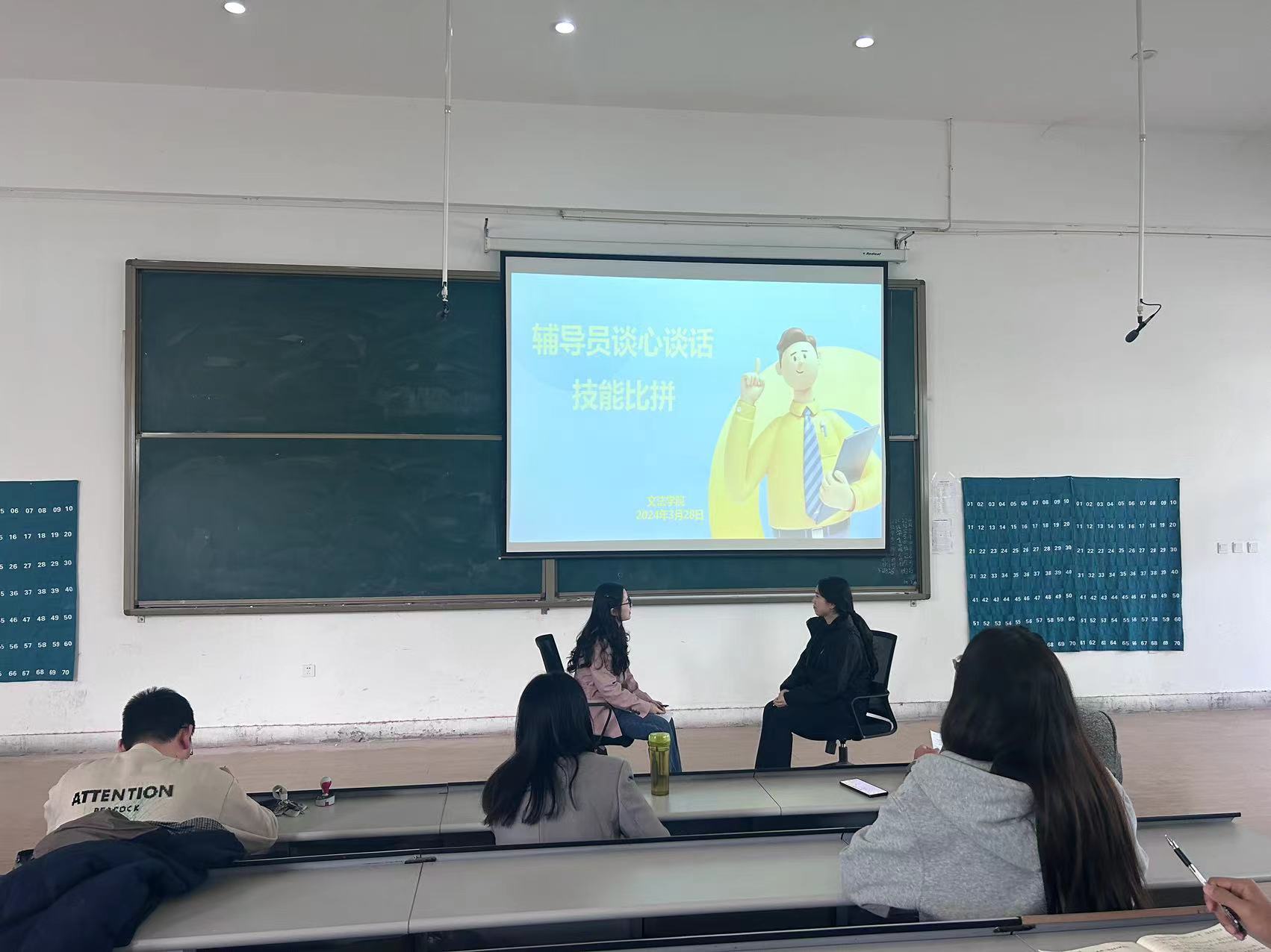 为推动学校思想政治工作高质量发展,提升辅导员队伍的理论能力和专业素养,3月28日—29日,太阳集团tyc539在教学1号楼118教室举办辅导员素质能力大赛初赛,段丰乐经理、刘晓川书记、尚瑞莉老师担任评委,全体辅导员参加。