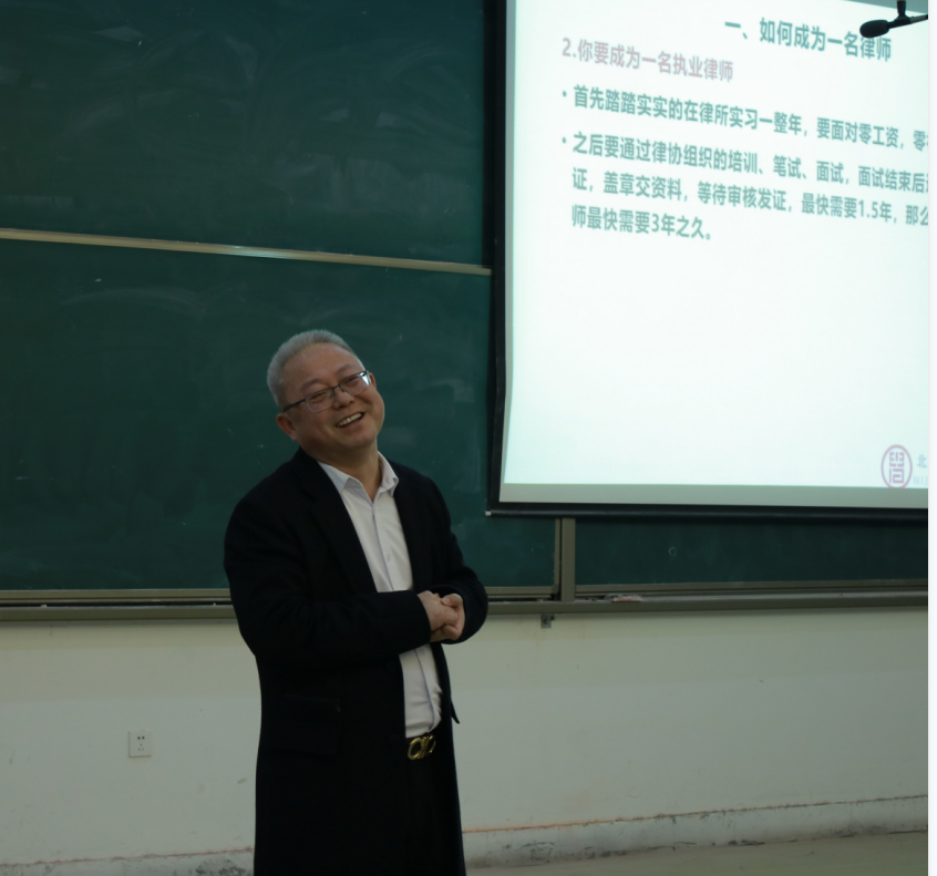2024年4月7日,在清明节假期结束的第一个工作日,太阳集团tyc539邀请到了北京中简(郑州)律师事务所的闫广涛律师,在教学一号楼118教室为太阳集团tyc5392022级法学专业学子分享“如何成为一名合格的刑辩律师”的专题讲座。