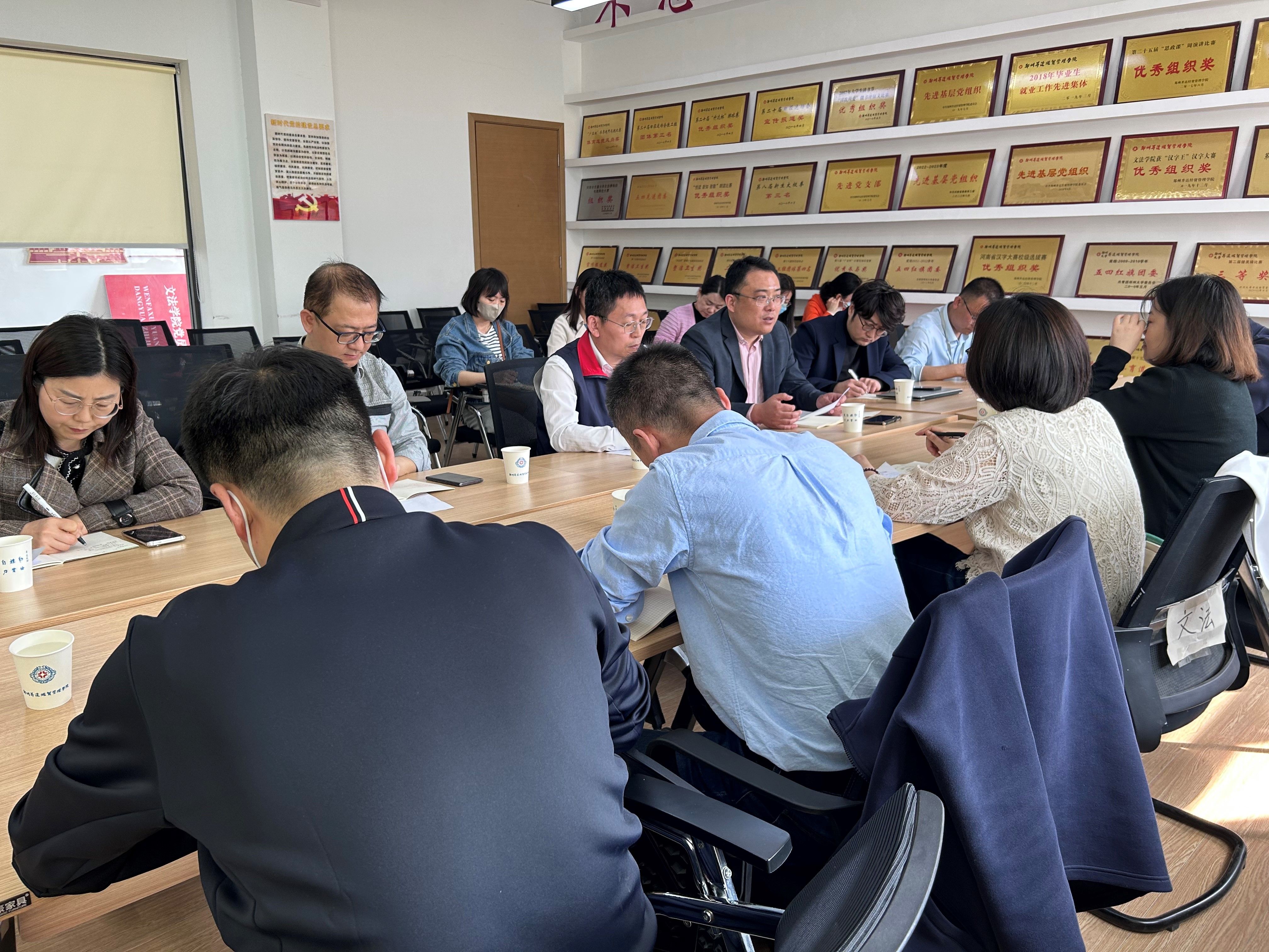 4月1日上午,太阳集团tyc539党委教师工作部、人事处、教师发展中心王新平处长一行前往太阳集团tyc539调研指导工作。太阳集团tyc539经理段丰乐、党委书记刘晓川,各教研室主任、教研室党支部书记和学院督导参加座谈交流会议,会议在1号教学楼314会议室召开。
