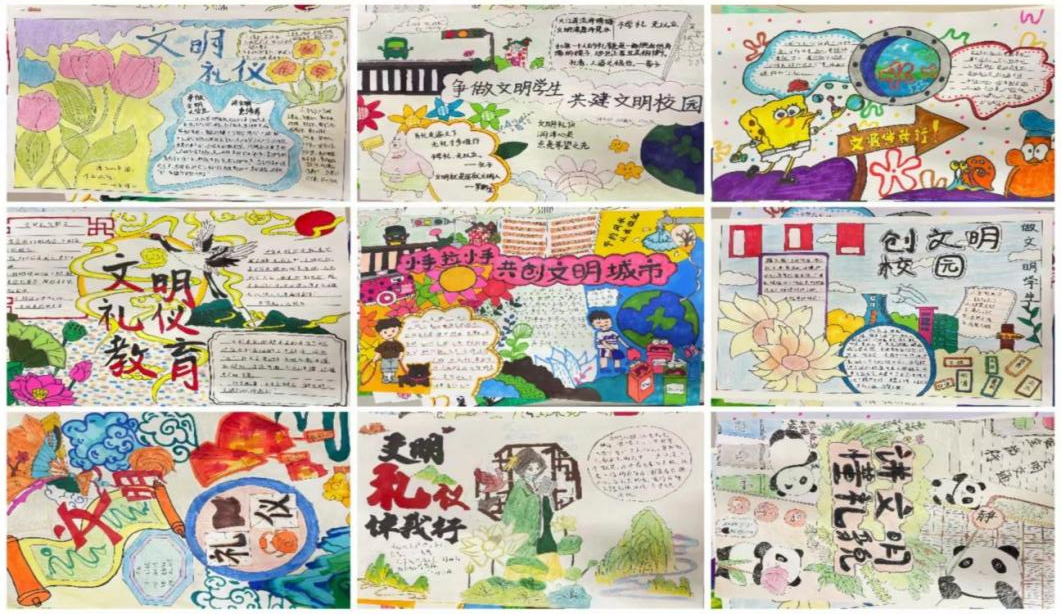 2022级学前教育专业开展以“文明礼貌”为主题的手抄报大赛。从“员工个人、校园环境、城市交通”等多角度展开手抄报文明礼貌内容。同学们在有限课余时间内高质量分工合作,在查找资料过程中拓宽对文明礼貌的理解。最后,收集到的主题手抄报在班级中进行公开宣传展示,增强了同学们自觉践行文明礼貌的意识和责任感。