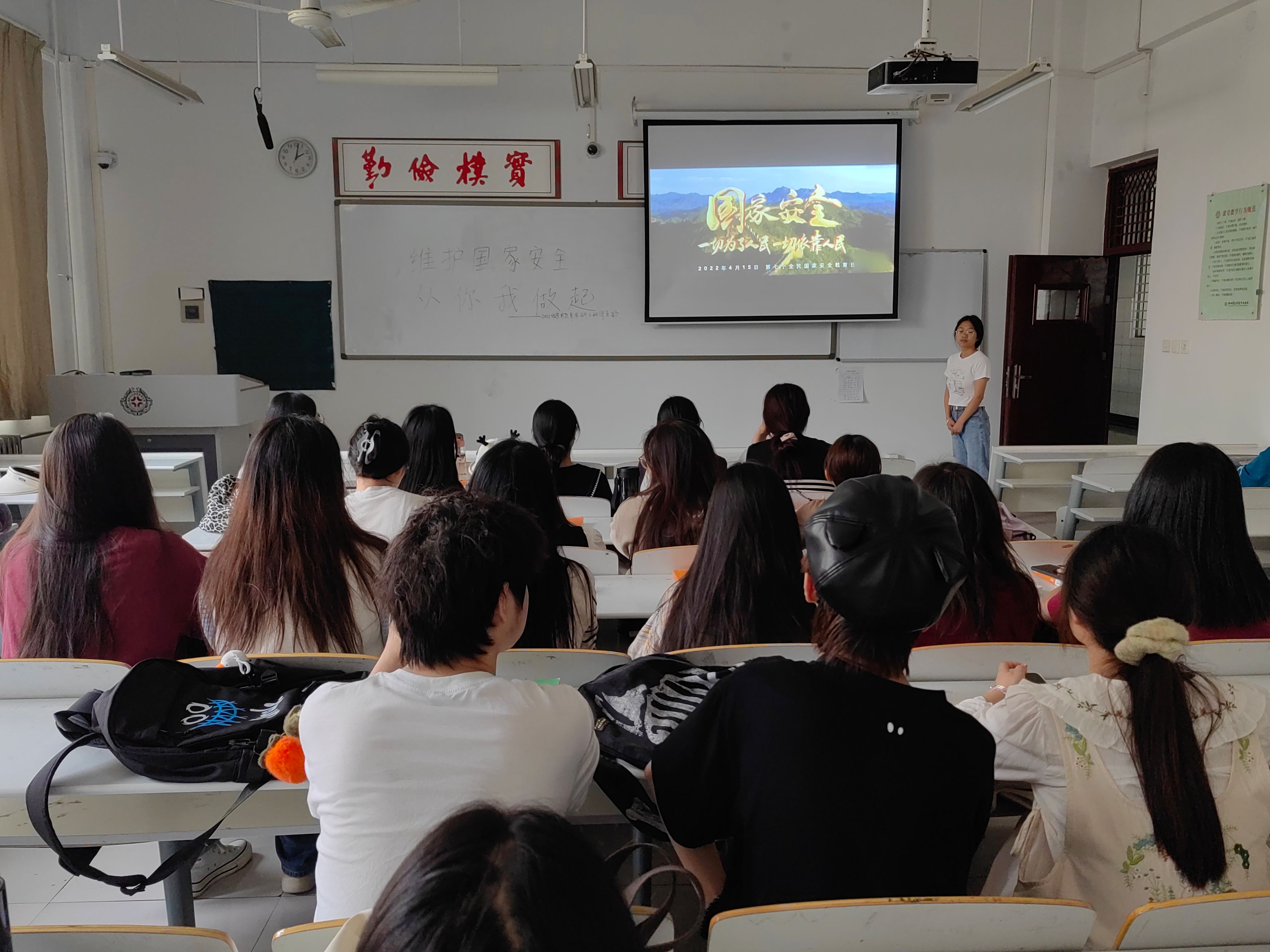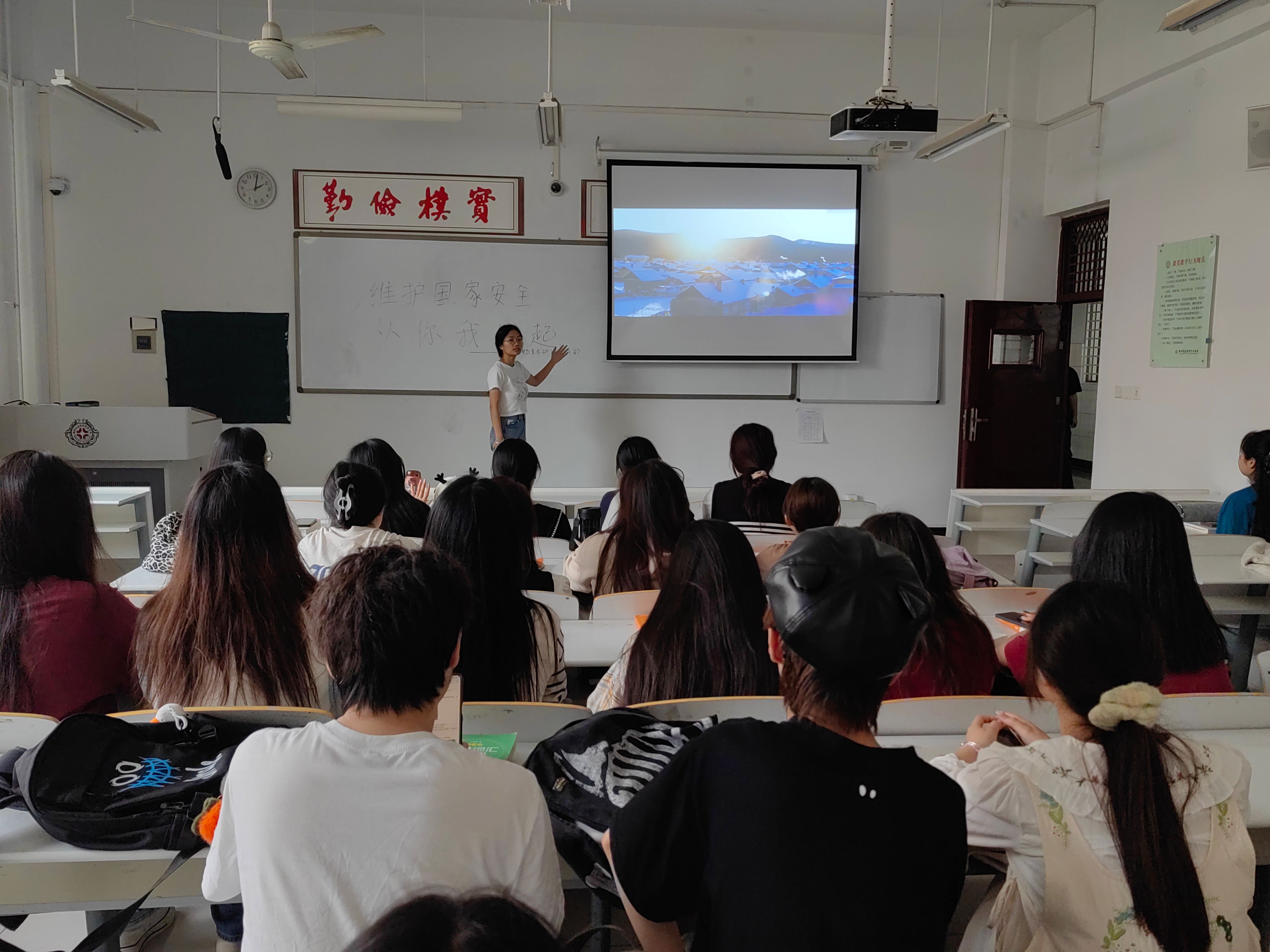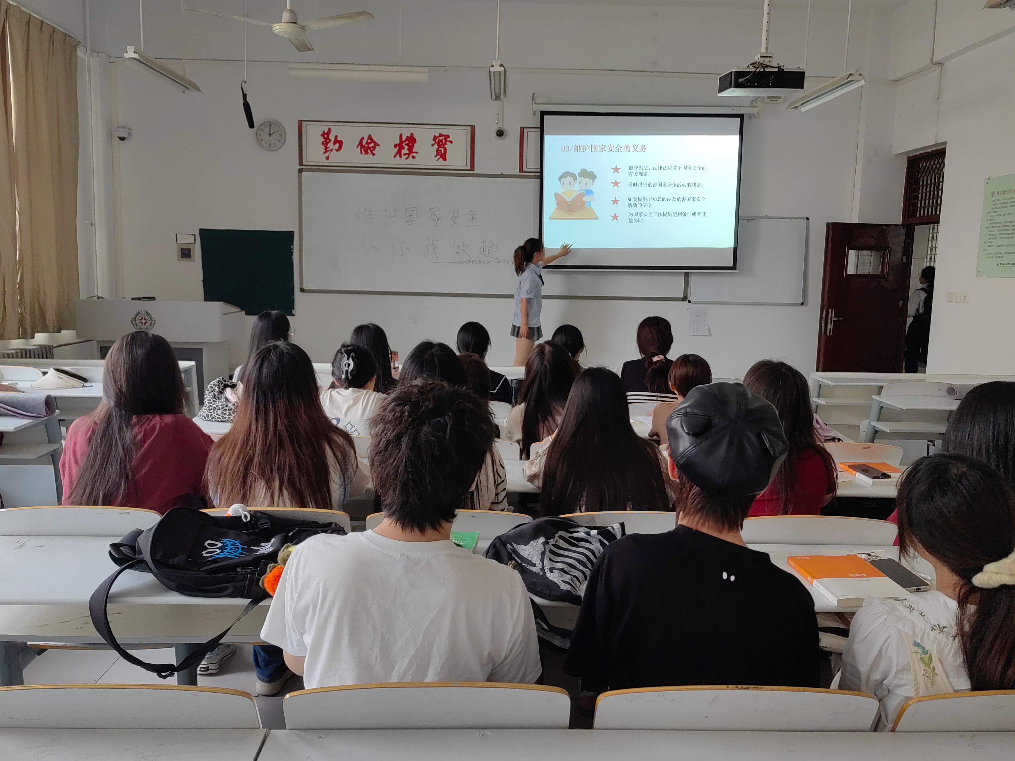 团日活动开始,班长张润轩带领全体团员观看了一段国防相关视频,视频中搭桥掘井、开山碎石的国防工作场景给团员们留下了深刻印象。接着,团员们依次分享自己对视频的所见所得,从安全发展关乎国家各领域生产到国防工作关乎每个人的日常生活,团员们从各个角度讲述了自己对国防安全重要性的理解。最后,团支书杨柳表示,只有深入了解国家安全的重要性,才能更好地履行我们的职责,为国家安全贡献自己的力量。团支书杨柳呼吁团员们应积极参与国家安全教育和实践活动,提高自己的综合素质和应对能力,从而更好地适应国家安全工作的需要,为国家安全事业贡献青春力量。