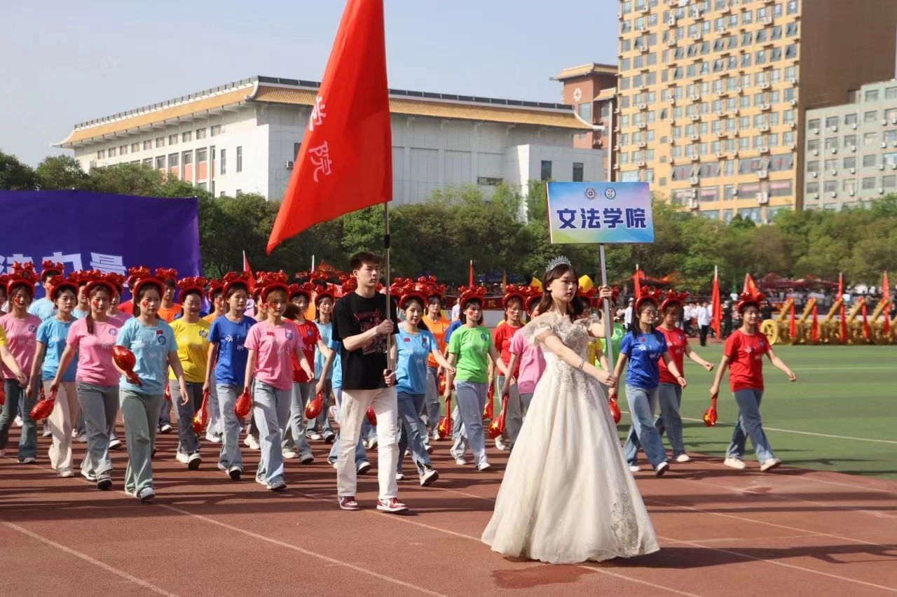 经过紧锣密鼓的前期准备,开幕式如期举行。伴随“文蕴千秋浩气,法济万世民生”的口号,文法方阵在第二十五届田径运动会上正式出场。他们身穿彩色服饰,头戴气球发箍,手拿红色气球,昂首挺胸,目光坚定,迈着矫健的步伐入场,高亢嘹亮的口号充分展现了文法学子朝气蓬勃的青春活力和昂扬的精神风貌。在方阵展示中,可爱活泼的舞蹈伴随着轻快的音乐,吸引了观众的视线,展现出文法学子的青春活泼。此次舞蹈展示不仅是一次视觉与听觉的盛宴,更是一次情感的交流与共鸣。随着庄严的国歌奏响,全场师生肃立致敬,奏唱国歌。最后,在盛大的文艺表演中,本次运动会开幕式表演圆满结束。