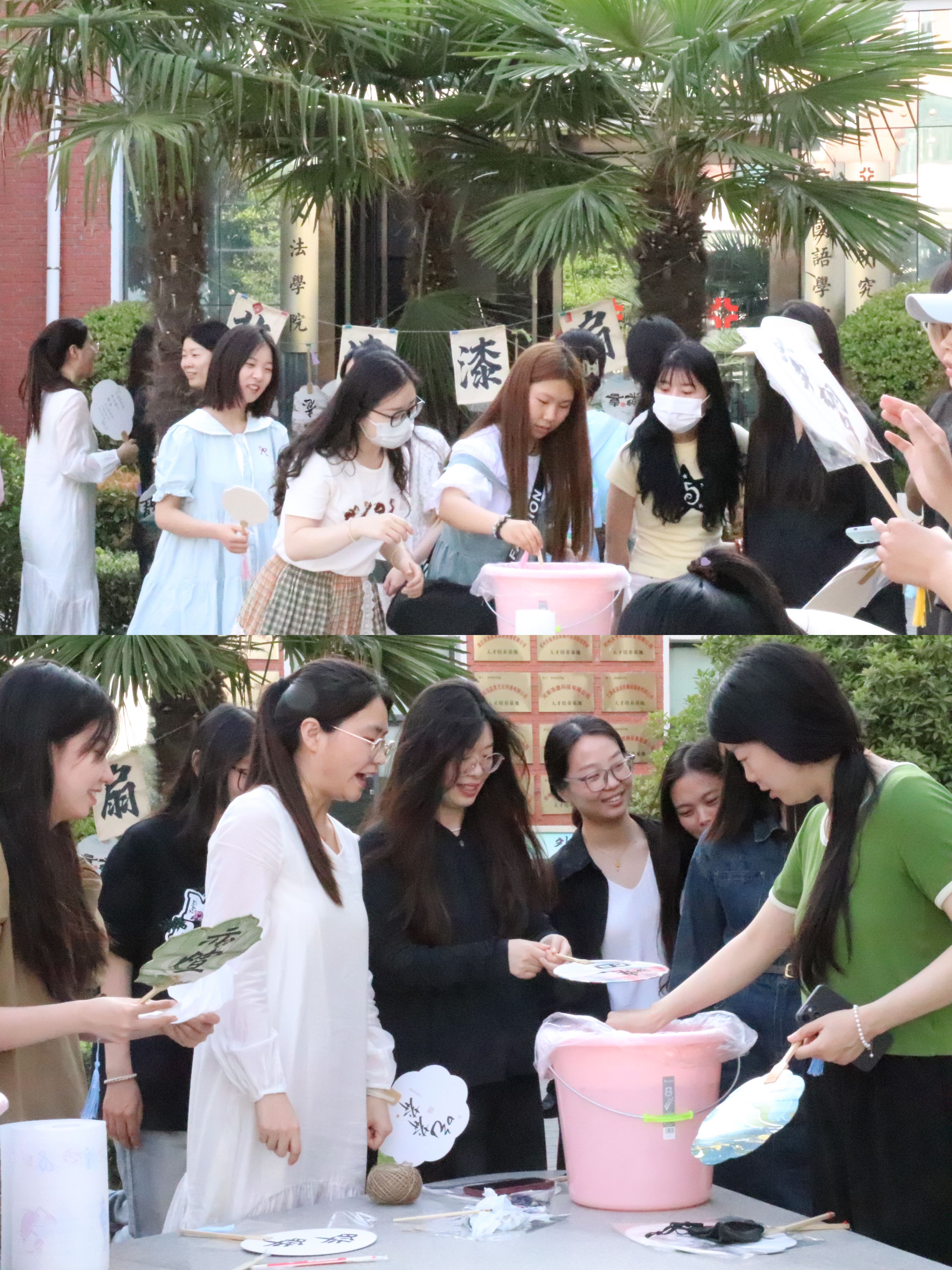 现场气氛热烈,激情高涨。漂染漆扇摇曳出的不仅是凉爽的微风,更是弘扬中华优秀传统文化之风,大家在制作中共同领略传统文化的魅力艺术。在轻松愉悦的氛围中,师生之间交流了创作心得,增进了彼此之间的了解和感情,同时也为课余生活增添了更加多彩的体验!