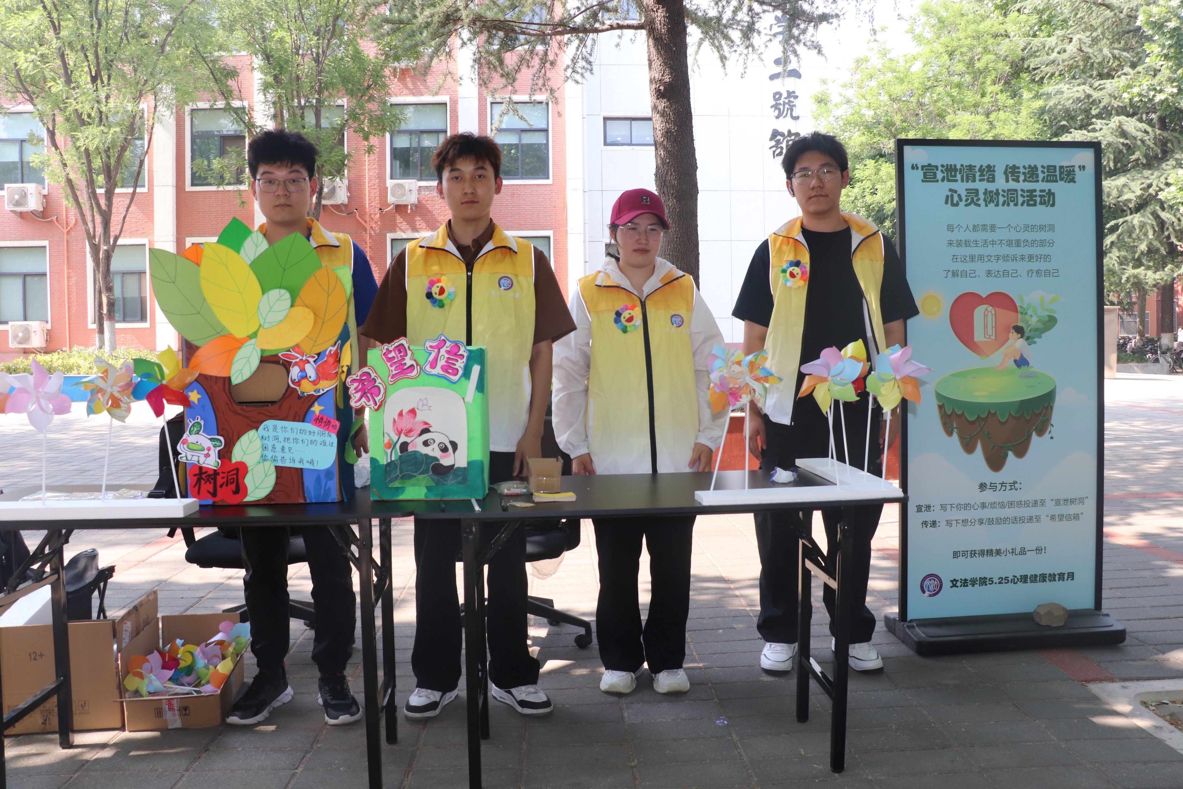 为进一步深化员工心理健康教育实践,响应学校“5.25心理健康日”活动号召,帮助员工在快节奏的学习生活中找到心灵的避风港,助力员工塑造良好心理状态。太阳集团tyc539于5月23日在教一楼旁小广场面向广大升达学子开展“宣泄情绪,传递温暖”心灵树洞活动。