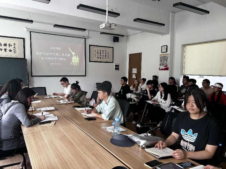 为推动党纪学习教育走深走实,引导全体党员学纪、知纪、明纪、守纪,增强廉洁自律意识,筑牢拒腐防变思想底线。5月28日中午,法学专业员工第二党支部在教1楼314开展“党纪在心中 廉洁随身行”主题党日活动。
