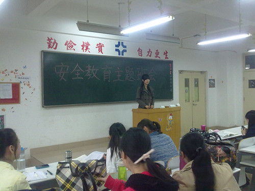 4月18日下午,10级团总支所有班级在辅导员的安排下在各自的主教室开展了以安全教育为主题的班会。为了让同学们注重自身的健康安全状况,各班学习委员带领大家学习正确的洗手方法以预防肆虐的禽流感。同时班委们还准备了食品安全的案例解析与对策,以讲解的形式把信息有效地传递给大家,让同学们深知“病从口入”,对食品的安全性要高度重视。同学们还以小组为单位,积极发言,提出在我们身边的安全问题和安全隐患。最后,辅导员对此次班会做出了总结,并提醒大家要更加注意宿舍安全,晚上睡觉关好门窗,严禁使用违章电器等。