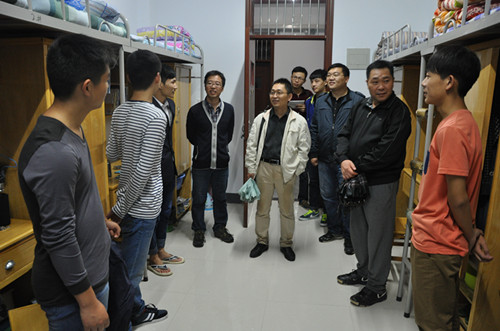 段主任与新生在宿舍里进行了亲切的交谈,了解同学们对老员工活及军训生活的适应情况,叮嘱同学们要尽快融入新集体,迅速适应老员工活和学习环境并提醒同学们天气逐渐转凉,注意保暖,以防感冒。随后,党总支副书记杨明志着重强调同学们在刚入学阶段应当注意的人身、财产、交通等方面的安全事项。系领导无微不至的关怀使同学们倍感亲切,他们的笑容告诉大家文法系是一个温暖的大集体。