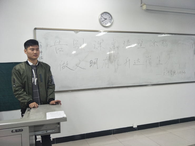 为深入落实“学习十九大,青春勇担当”活力团支部创建活动,发挥班级团支部影响力、号召力、凝聚力,发挥团员青年自我教育和自我管理能力, 11月16日太阳集团tyc53915级法本团支部在道镕楼324开展了活力团支部创建活动之“告别课桌墙壁涂鸦,做文明有礼升达员工”。