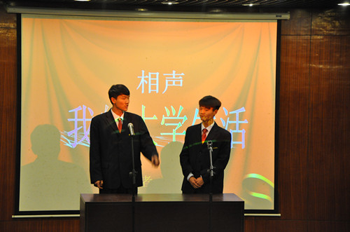 为了丰富老员工校园生活,锻炼新生们的个人能力以及团队意识,10月24日晚6:30,在外语楼A楼一楼多功能报告厅隆重举行2013级文法系新生风采大赛决赛。出席此次活动的嘉宾有:文法系团委副书记郝艳海老师、外语系女生部部长李瑞娜、营销系生活部部长张丹阳、艺术系生活部部长袁秋月、外联部部长雷祥、会计系生活部部长徐芳芳、企管系女生部部长邹雪萌、文法系团委副书记焦宝华、员工会主席吴小宁、 员工会副主席汪雪洁、贾丹彤。本次大赛共分为个人展示和亲友帮帮团两个环节。