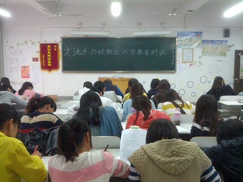 9月27日上午,文法系2013级新生在外语一号楼409、410、411教室举行了新生入学教育的测试工作。