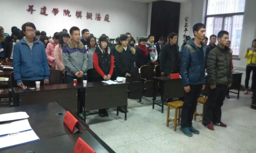 12月25日下午4:00,升达模拟法庭14级成员在综合楼225举办了一场精心准备的模拟审判活动,以此来总结即将过去的2014年,迎接新年的到来。本次活动有幸邀请到了文法系法学专业专职教师任宏涛老师和于克涛老师前来指导点评,同时也邀请到郑南高校法学联合会兄弟院校河南检察官学院法雨社、河南工程学院天秤社、中原工学院法律协会、中原工学院信息商务学院法律服务社的相关同学前来观赏此次模拟审判活动。