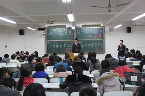 本次比赛辩题为“生活需不需要美丽的谎言”。继正方慷慨激昂、反方充满幽默色彩的自我介绍之后,双方一辩用具有高度概括性的陈述博得了现场观众的阵阵掌声;在攻辩环节中,双方围绕辩题针锋相对、斗志昂扬,双方均使出浑身解数、毫不示弱;最后,双方辩手针对对方逻辑上的漏洞逐一回击,为取得胜利做最后努力。比赛结束之后现场评委做精彩点评,13级汉本班高子婷最佳辩手的称号,13级法本、汉本、新闻班分别获得辩论赛的冠、亚、季军。