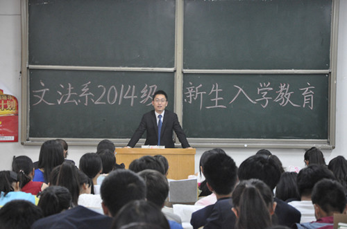 9月26日下午,文法系2014级全体新生齐聚在外语楼1-102教室,认真聆听了文法系段丰乐主任丰富而精彩的入学教育主题报告。
