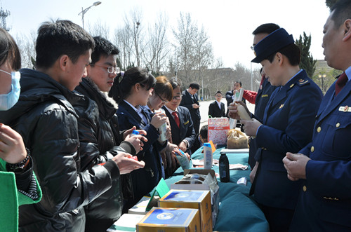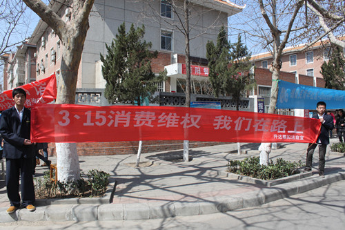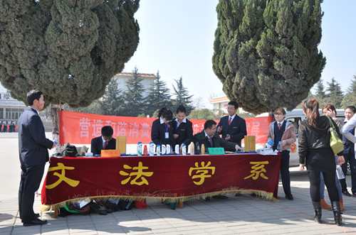 春暖花开之际,新消法的宣传如一阵清风,给升达人送来了无形却有力的精神食粮,众文法学子身着整齐的校服摆出“3.15”的造型,吸引了众多师生的目光。除此之外,在校园各主干道,文法系参与此次活动的工作人员正认真地为路过的同学们讲解有关法律的各种知识。工商管理所同志在明德讲坛讲述了如何识假打假,给我们上了一堂意义深刻的维权课。