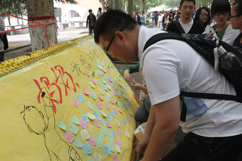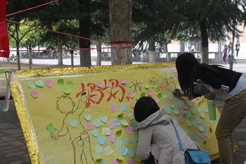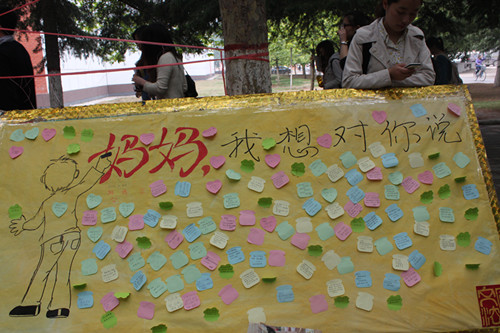 此次活动通过给母亲写祝福语以及留下对母亲要说的话来庆祝母亲节。中午十二点,由我系精心制作的母亲节展板吸引了广大同学们的驻足。听到工作人员讲解本次活动的目的,同学们反响强烈,积极参与本次活动,纷纷拿起了便利贴写下自己对母亲的节日祝福以及平日里未说出口的爱。不久,展板上就贴满了密密麻麻的祝福便利贴:“祝天下母亲天天开心,身体健康”、“妈妈,您辛苦了”、“妈妈,在我不在身边的日子里,您要照顾好自己”等。现场充满了温馨和谐的氛围。贴满祝福便利贴的宣传板表达同学们对本次活动支持,真诚朴实的话语蕴含着同学们对母亲的浓浓爱意与深深祝福。