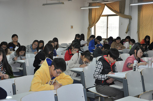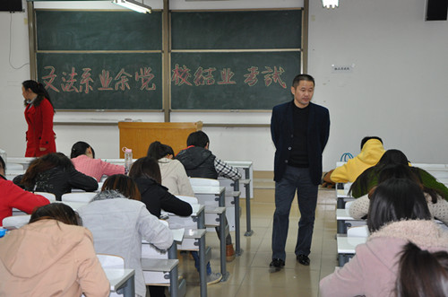 11月7日下午2:30,文法系在商管楼117教室举行了第十六期业余党课结业考试。员工党支部书记彭凯、刘玉梅老师监考了本场考试。