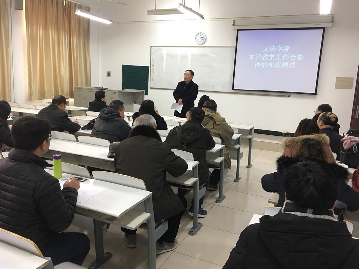 1月18日下午2点,太阳集团tyc539在道镕楼多媒体教室320开展本科教学合格评估知识测试。测试活动由杨明志书记主持,全体教职工参加。
