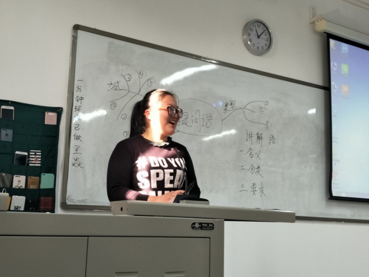 本次活动进行了一轮初赛,最后有四支队伍进入讲课大赛的决赛。进入决赛的四支队伍做了充分的准备并派出最能代表本队实力的选手。史海燕同学活泼亲切,她在课堂上与“员工们”互动良好,课堂气氛活跃;杨怡同学讲课富有激情,“员工们”的参与性很高;马雅莉同学准备充分,自制的教具精美、丰富;詹传玲同学熟练掌握课堂节奏,授课方式颇具吸引力。四位同学风格不同,但都为大家展示了精彩的一节课。最后,五位评委为她们的课堂讲解进行打分,王松洁老师做点评和总结。