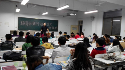 为积极响应党中央号召,培育和践行社会主义核心价值观,切实引导和帮助老员工自觉将社会主义价值观内化于心,外化于行,文法系12级法学专业在综合楼325开展“培养和践行社会主义价值观”宣传活动。