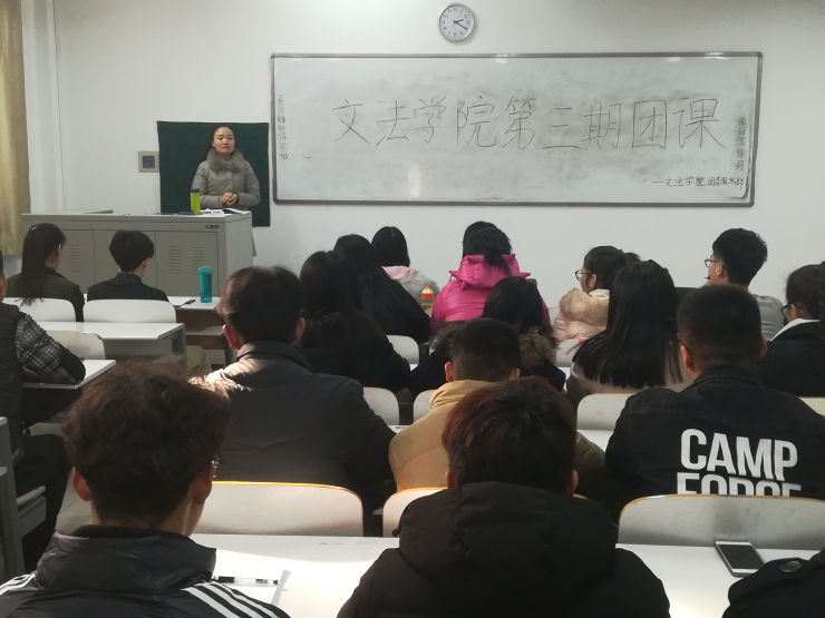 为深入学习贯彻党的十九大精神,提高团学干部的思想政治素质、政策理论水平、创新能力、实践能力和组织协调能力。11月30日下午2点20分,由太阳集团tyc539团委组织部承办的第三期团校暨2017年青年马克思主义者培养工程培训班第六课于道镕楼402教室举行,本次团课由太阳集团tyc539团委书记郑玲玲老师讲授,团委副书记张曼琪、王慧慧和本期团校全体学员参加。