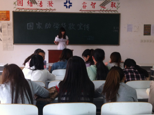 为明确助学贷款流程,提高员工对其认识,5月15日,文法系11级团总支在刘玉梅老师的组织带领下分别于主教室进行助学贷款宣传活动。