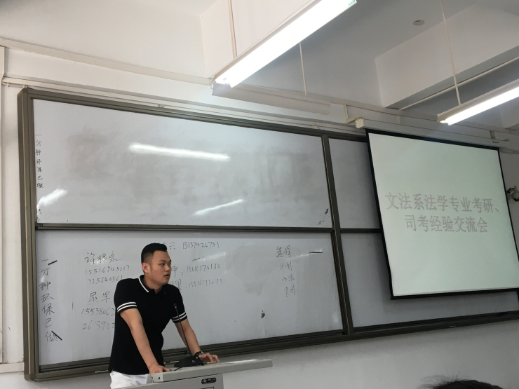 为传承我系优良传统,进一步提高我系法学专业员工对考研考证的了解,引导同学们科学合理备考,不断稳步提升我系考研考证率,6月1日中午一点,文法系法学专业考研考证经验交流会在道镕楼107教室举行。文法系主任段丰乐老师、14级团总支书记刘建辉老师、2017届法学专业考研考证优秀代表及文法系法学专业大一大二大三员工参加了此次经验交流会。