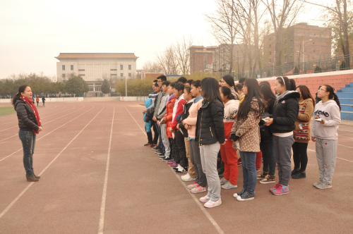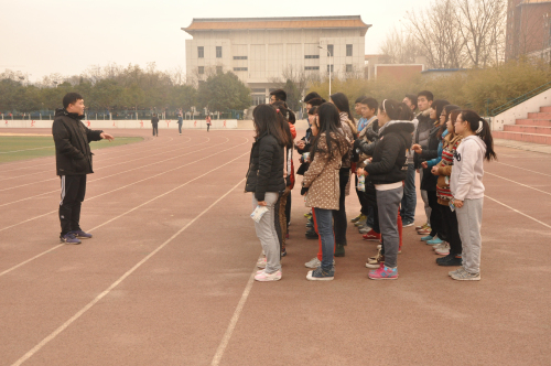 12月18 日下午4:00点,文法系田径队冬季运动员在体育场集合并训练。文法系行政秘书兼团委书记郑玲玲老师、12级团总支书记兼田径队教练彭凯老师、14级团总支书记刘建辉老师在团学会主席团的陪同下特意来到我系田径训练场地,对运动健儿们进行慰问、鼓励和指导,极大的振奋了运动员们的士气。