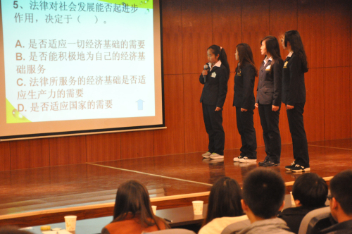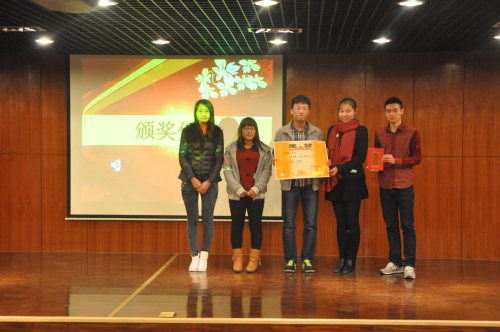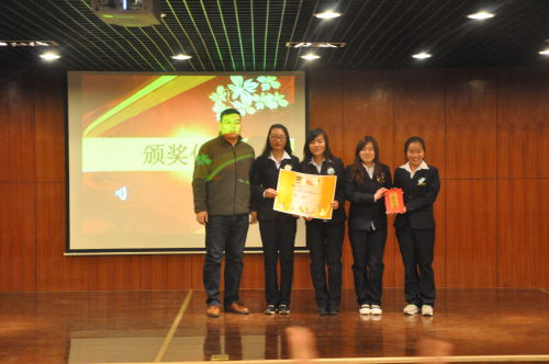 活动一开始,主持人用激情的语言向到来的嘉宾和全场观众问好,并详细地介绍了世界老员工节的由来以及存在的意义。 随后,比赛正式开始。首先进行了精彩、自信洋溢的团队展示,每一个团队都用自己独特的方式令在场观众迅速认识他们;接着的生死速递在紧张的气氛中进行,虽然时间紧迫,但是参赛团队都沉着、淡定地在规定时间内完成答题,让所有人都赞叹不已;第三环节的心有灵犀,让同学们感受到团结的力量和灵动的肢体语言,真是惟妙惟肖;最后的实力大比拼环节,各队选手使出浑身解数,通过自己多年的知识积累,就其热点问题很好表达了自己的观点和见解。经过激烈的角逐,汉班王倩文、上官莹莹、张静华、季佳慧获得第一名,汉班赵天娇、杜雨阳、王梦凡、随艺诺获得第二名,新闻班黄月月、张哲、付景方、晋金苹获得第三名。之后,刘建辉老师做了精彩点评,对选手们的精彩表现进行表扬并指出他们的不足之处。最后,彭凯老师和吴艳豪老师对获奖同学进行颁奖。