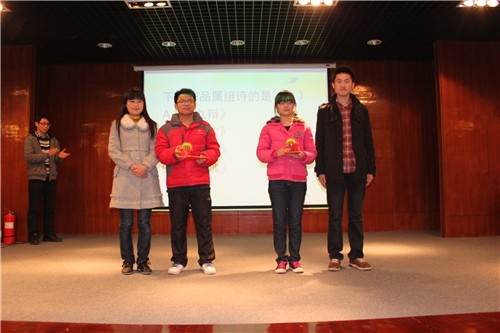最后,10法一的石祥帅同学摘得了本次比赛的桂冠,11汉一的石莹莹同学和10法一的刘新勇同学荣获二等奖,11法二的汪雪洁同学、张艳丽同学和11汉一的孙鑫鑫同学获得三等奖。
