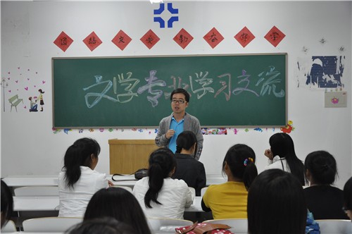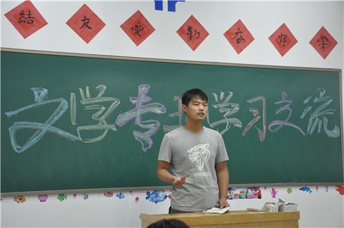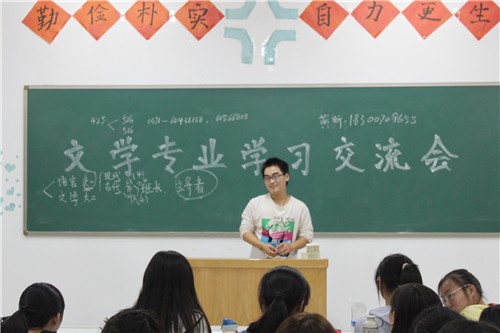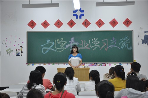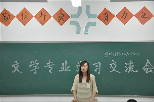 为帮助文法系文学专业大一新生尽快适应老员工活并充分了解自己所学专业,9月25日晚,由2012级辅导员郝艳海老师和文法系团学会成员共同为文学专业新生准备的文学专业学习交流会在时金楼102、103教室准时拉开帷幕。