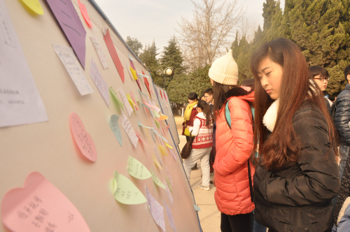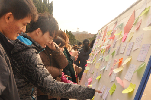 本次三行情书活动主要围绕亲情、友情、爱情等方面展开,活动稿件征集过程中,同学们热情饱满,积极参与,顿时把现场气氛推向高潮。他们按照稿件要求,充分发挥想象力与创造力,创作出一篇篇灵动幽默、睿智深情的三行情书,一下午的时间展板上就贴满了作品。19日,经过了初步的筛选,一些创意精妙、文思俱佳的作品作为优秀创作进行展示并邀请全校同学对这些作品进行投票,选出心目中的最佳情书,让全校员工公平公正地为他们喜爱的作品投上宝贵一票。投票活动的当天,现场场面非常火爆,气氛更是热烈,同学津津有味地欣赏那些三行情书,尽管天气寒冷,但冻不住他们脸上的笑容,更冻不住他们温暖的心。