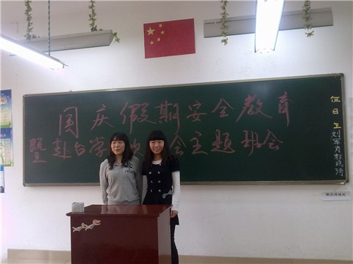 9月22日下午2时40分,文法系09级在商管楼各主教室召开班会,辅导员郭青梅老师主持会议,在09汉本班同时还举行了赴台员工欢送会。会议主要围绕员工国庆假期的安全教育开展,并对即将赴台学习的同学举行了简单温馨的欢送仪式。