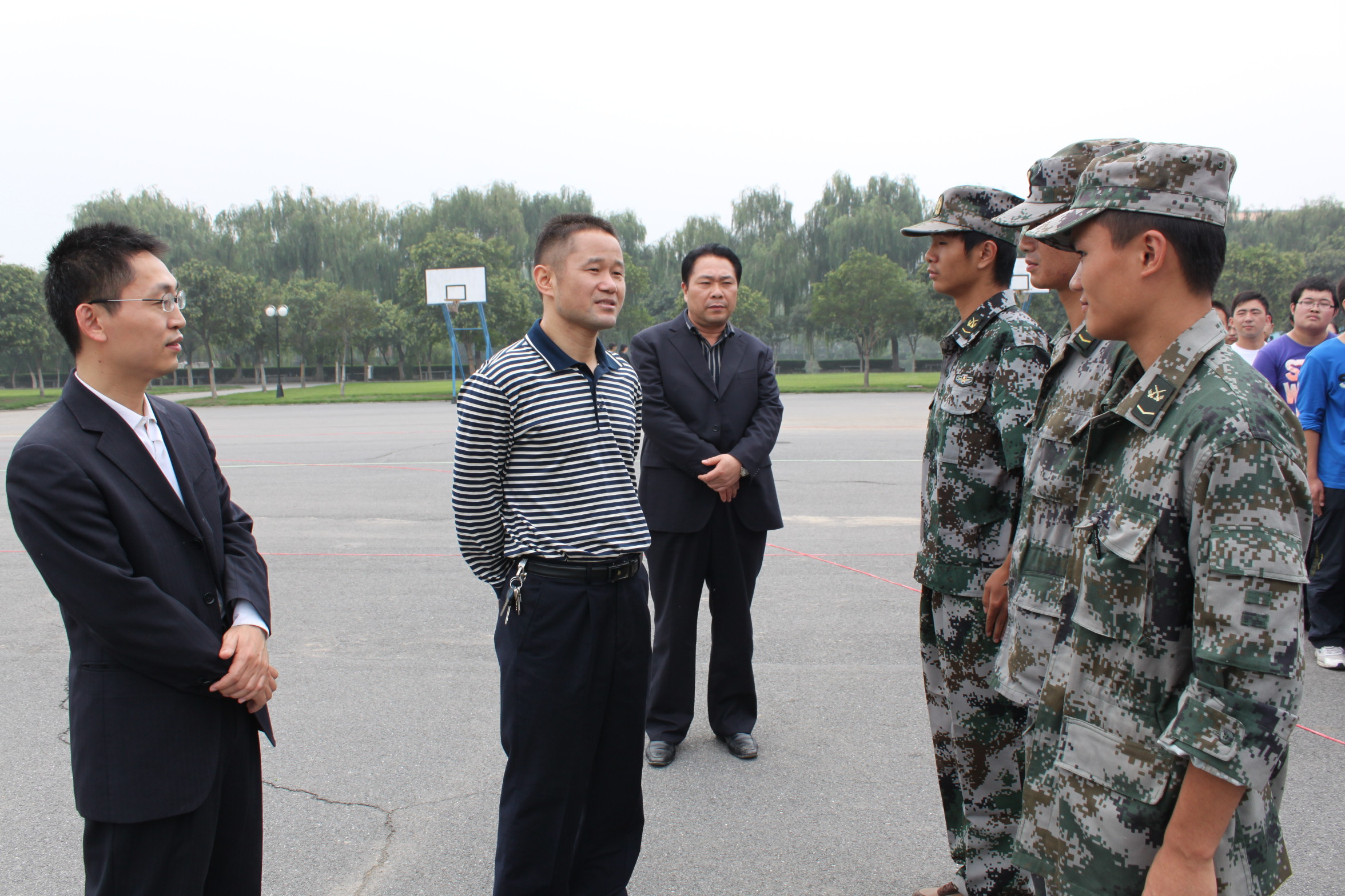 9月16日中午,系党总支张朝阳书记、段丰乐主任、系党总支杨明志副书记、行政秘书郑玲玲和2011级辅导员刘玉梅老师来到军训场地看望军训教官和文法系全体新生,了解员工的第一天军训情况。张书记首先对辛苦训练的教官表示感谢并仔细询问了新生军训情况,对新生在军训现场的良好表现表示满意。张书记还希望全体新生能够虚心学习,刻苦训练,严守纪律,希望大家能以艰辛的付出创造优异的成绩,在阅兵会操上以优异的成绩向全系师生汇报。段丰乐主任叮嘱同学们要学会独立,尽快融入新集体,迅速适应老员工活和学习环境,为老员工活开个好头。