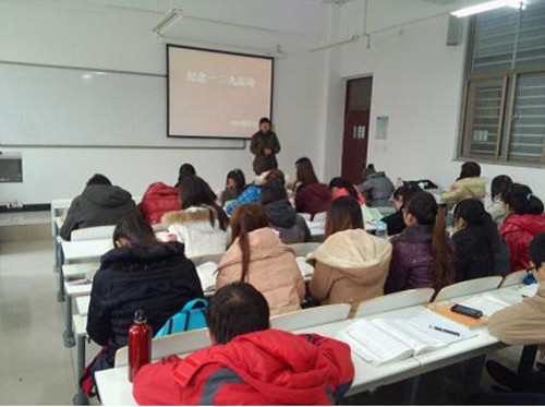 为激发老员工爱国主义精神,增强其责任感、使命感。在纪念一二·九运动77周年之际,文法系2011级团总支在刘玉梅老师的组织带领下,于12月7日,在商管楼各个班级主教室分别开展纪念一二·九团日活动。