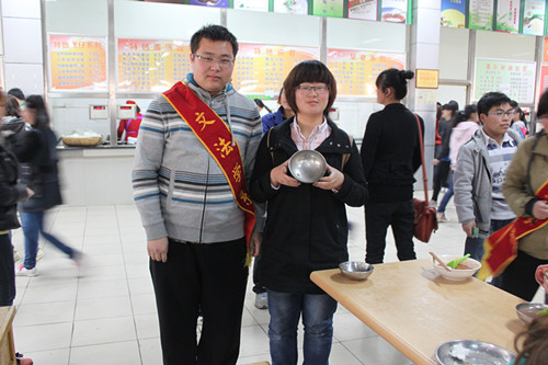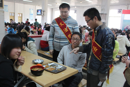 继“光盘行动”宣传活动之后,4月16日,文法系员工会生活部深入食堂,到公司龙湖食府调查“光盘行动”的践行情况,并进行了相关采访活动。