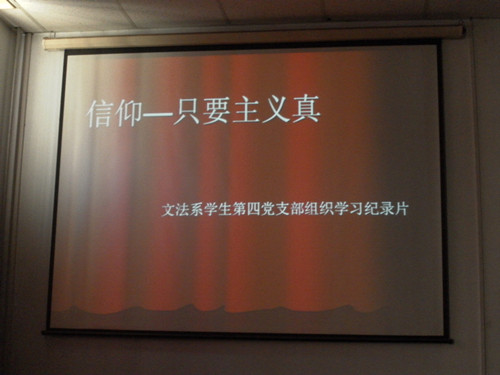 为了对广大党员和入党积极分子进一步加强正确的理想信仰教育, 4月10日,文法系第四员工党支部在党支部书记彭凯老师的组织下,于综合楼225教室观看了由中央组织部、中央文献研究室、中央党史研究室、中央电视台联合摄制的大型理论文献纪录片《信仰》。