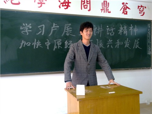 首先各位辅导员老师向大家介绍了本次政治学习的重要意义,号召大家将学习省委书记卢展工的报告和温总理的讲话与自身实际相结合,将学习内容贯彻落实到日常工作、学习和生活中,为中原经济区建设和中华民族的繁荣富强贡献自己的力量。之后,各班团支书带领大家全文学习了《卢展工在中国共产党河南省第九次人民代表大会上的报告》和《温家宝与南开中学师生谈心》的具体内容。听完报告后,同学认真讨论了两份报告精神,卢书记的报告使大家精神振奋,大家立志要从搞好学习、多学本领做起,以实际行动为中原经济区建设做贡献。在学习了温总理与南开师生谈心的内容后,大家被温总理对母校的浓情厚意深深感动,使自己在感恩周里又升华了一次对母校升达的感激之情。