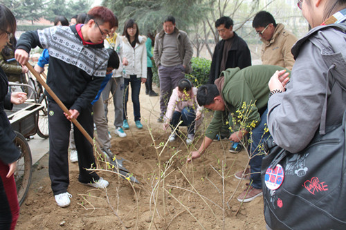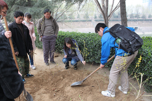 此次植树活动,不仅为阳春三月增添了一抹盎然的绿意,也使同学们在参与的同时自我教育,自我提高,增强了环保意识,提高了个人综合素质;同时此次活动也成为了我系“志愿者服务月”活动中的一个亮点。 (系文学中心 张文雅 王俊涛)