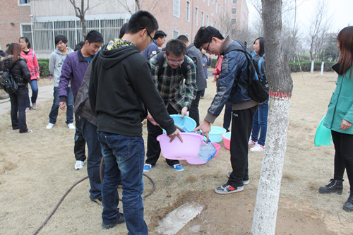 活动开始之前,公司园丁师傅首先介绍了植树需要注意的步骤细节和安全问题,并强调了秩序问题;然后,园丁师傅为大家分配了一棵棵树苗,大家手持铁锹和水桶,小心翼翼地将一棵棵充满生命力的小树植入新挖的树坑里;植树过后,大家又纷纷拿起水桶,细心地为每一棵小树浇灌生命之水,尽管额头上布满了汗珠,但是大家看着那一棵棵充满生命力的小树,无一不露出幸福的笑容;最后,大家纷纷与自己所种的小树合影留念,以此结束本次的植树活动。整个活动井然有序,同学们干劲十足,相互帮助,尤其是生活部部长顾默,在整个植树活动中,任劳任怨,尽职尽责,热情服务大家,团学会主席团成员也热情地加入活动之中,细心指导,并倡导大家多参加有环保意义的活动,用行动让校园变得越来越美,为校园的美化奉献自己的一份力量。