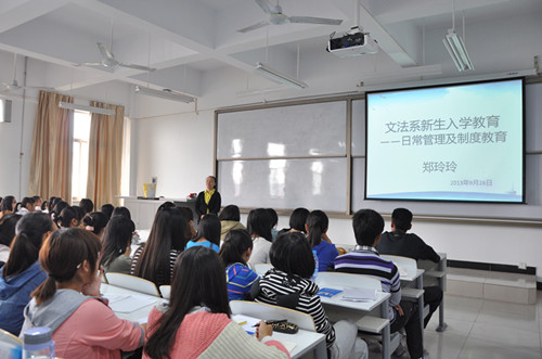 全新开始,做最好的自己——文法系行政秘书郑玲玲老师为2013级新生做入学教育