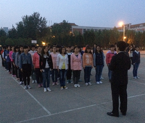 一年一度的院春季运动会即将举行,文法系历来重视这一展现全系集体凝聚力和整体精神风貌的重要赛事。4月24日晚7:00,文法段丰乐主任在系行政秘书兼团委书记郑玲玲和系团委副书记郝艳海的陪同下,深入明德讲坛看望慰问参训仪仗队员,为大家加油鼓劲。