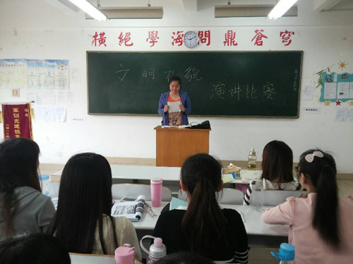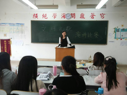 响应院系“文明礼貌月”号召,为了进一步将文明礼貌之风传播到每一个同学的心里,4月1日下午4点,文法系2012级文学专业在商管楼401教室开展了一次以“文明礼貌”为主题的演讲比赛,此次比赛受到了同学们的欢迎和重视,文学专业各班同学积极参加本次活动。