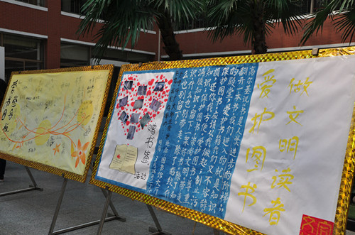 本次活动通过展板宣传及签名的形式进行,下午来往于图书馆的同学们纷纷走上前观看展板上所呈现的以“做文明读者,爱护图书”为主题的相关内容,并积极地在签名板上签下自己的名字,为保护图书而共同努力。本次活动引起了广大同学们的共鸣并获得了同学们的大力支持,活动取得了圆满成功。